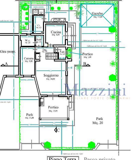 Le metrature della proprietà sono: lotto di terreno mq. 330, il piano terra mq. 68, il piano primo mq. 66, portico mq. 16, terrazzo mq. 16, centrale termica mq. 5, gazebo mq. 17,50.