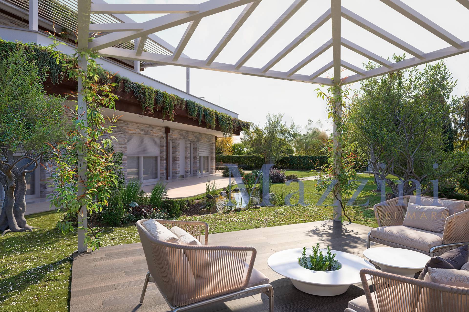 Costruita nel 2023, si sviluppa su due livelli per un totale di 362 metri quadrati e dispone di 15 locali, tra cui 5 camere da letto e 6 bagni, per garantire spazio e privacy ad ogni membro della famiglia.
