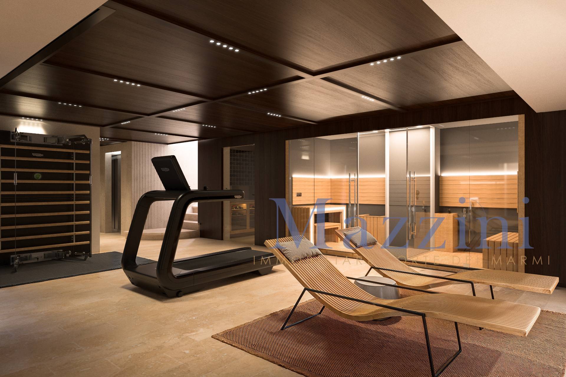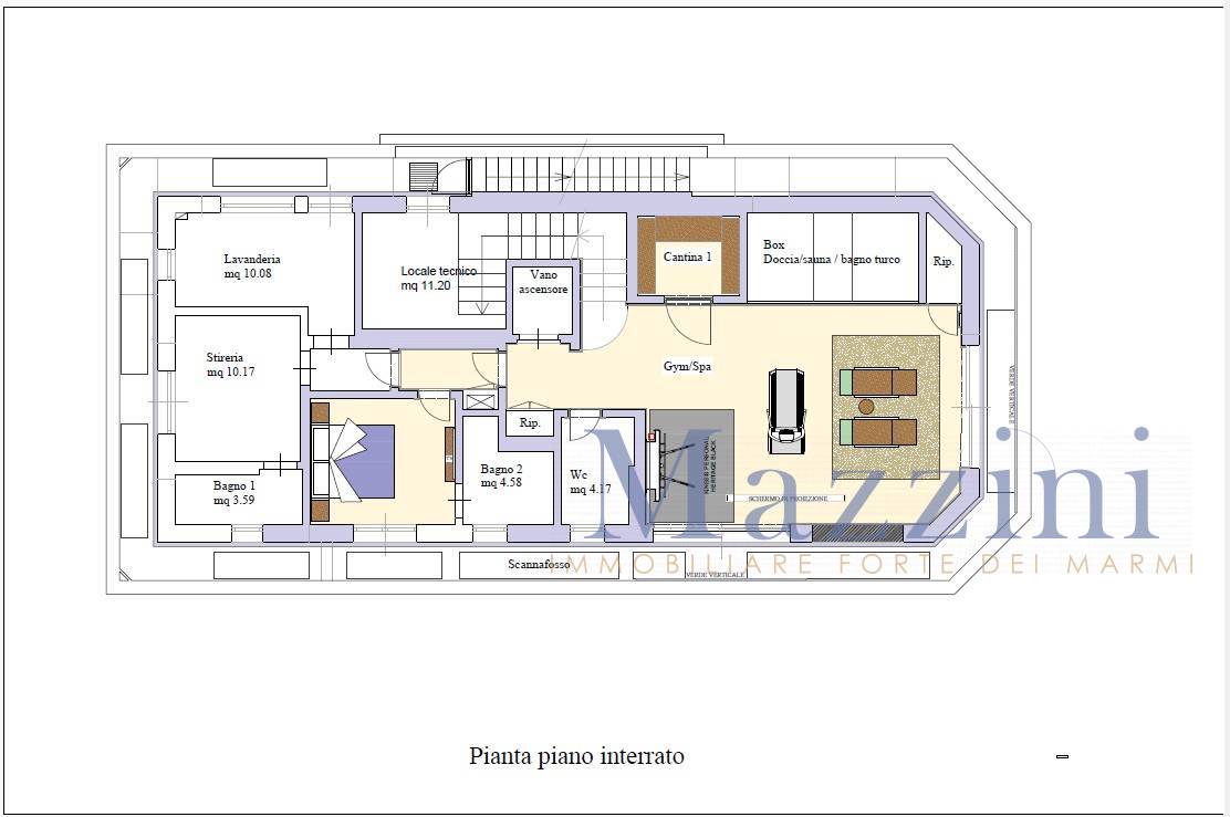 Al piano seminterrato di circa 150 mq., dispone di un'ampia zona living servita da un bagno, sauna, una cantina vini, due camere matrimoniali ciascuna con proprio bagno, una stanza ad uso lavanderia e locale tecnico.